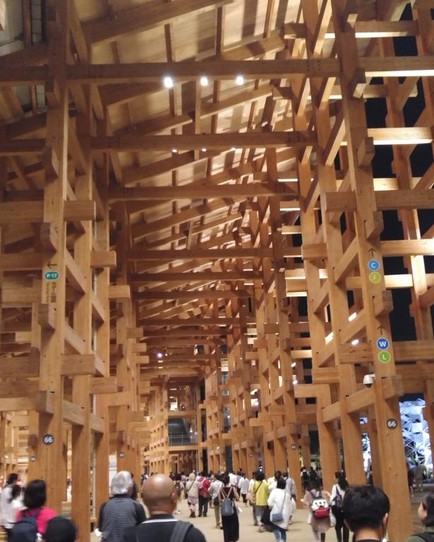 日本館をはじめ、長蛇の列に並ぶ気になれず、ついつい大屋根リングの下の日陰へ。
